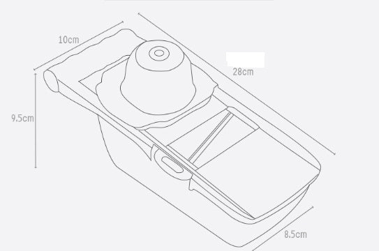 The package includes: 1 x vegetable chopper, size 28 cm x 10 cm x 10.5 cm. 1 x 5.5mm / 4mm / 3mm chopper slicer, 1 x 3mm / 2mm / 1mm slicer, 1 x wave slicer, 1 x grinder and 1 x safety protector. Do not worry. All vegetable chopper accessories are made of high quality and environmentally friendly materials to provide you with a safe and healthy commitment. Meet your daily needs.