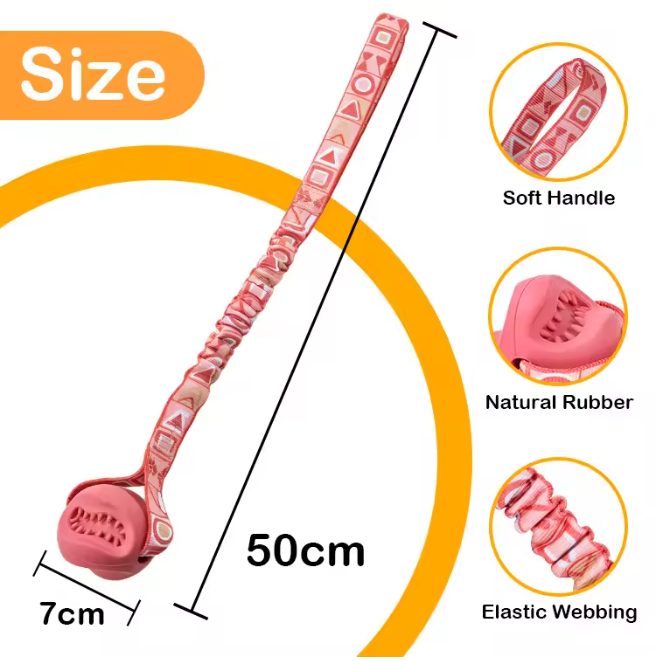 Safe Eco-Friendly Interactive Dog Chew Toy Elastic Bungee Natural Rubber Ball Textured Teeth Cleaning Elastic Bungee Strap